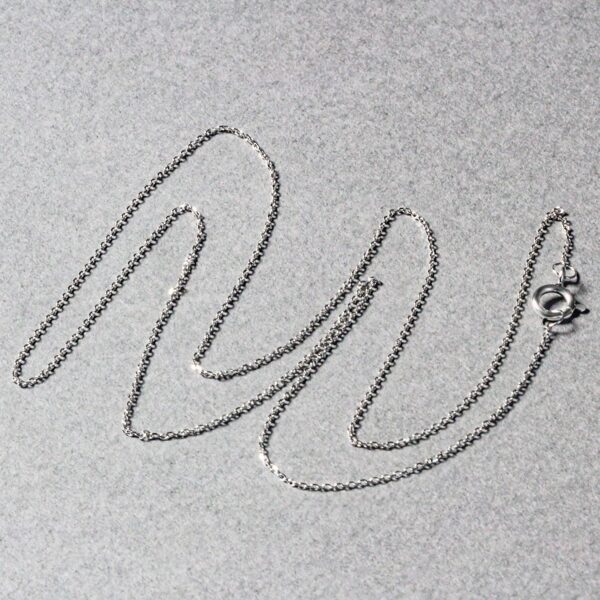 This diamond cut cable link chain comes in 14k white gold and has a width of 0.68 millimeters.